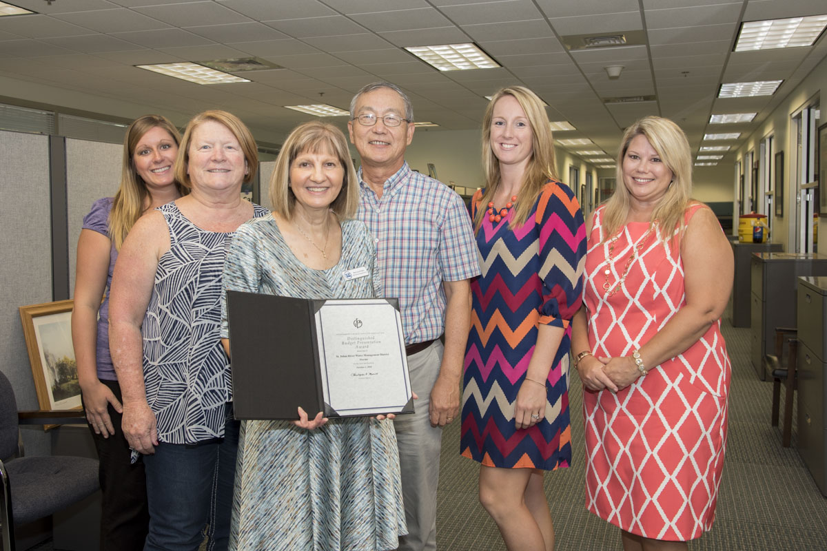 PALATKA, Fla., Aug. 15, 2017 — The St. Johns River Water Management District has been awarded the Distinguished Budget Presentation Award for its fiscal year 2016-2017 budget from the Government Finance Officers Association (GFOA) of the United States and Canada. Mary-Lou Pickles, director of the District’s Office of Financial Services and the District’s former budget director, also was recognized.