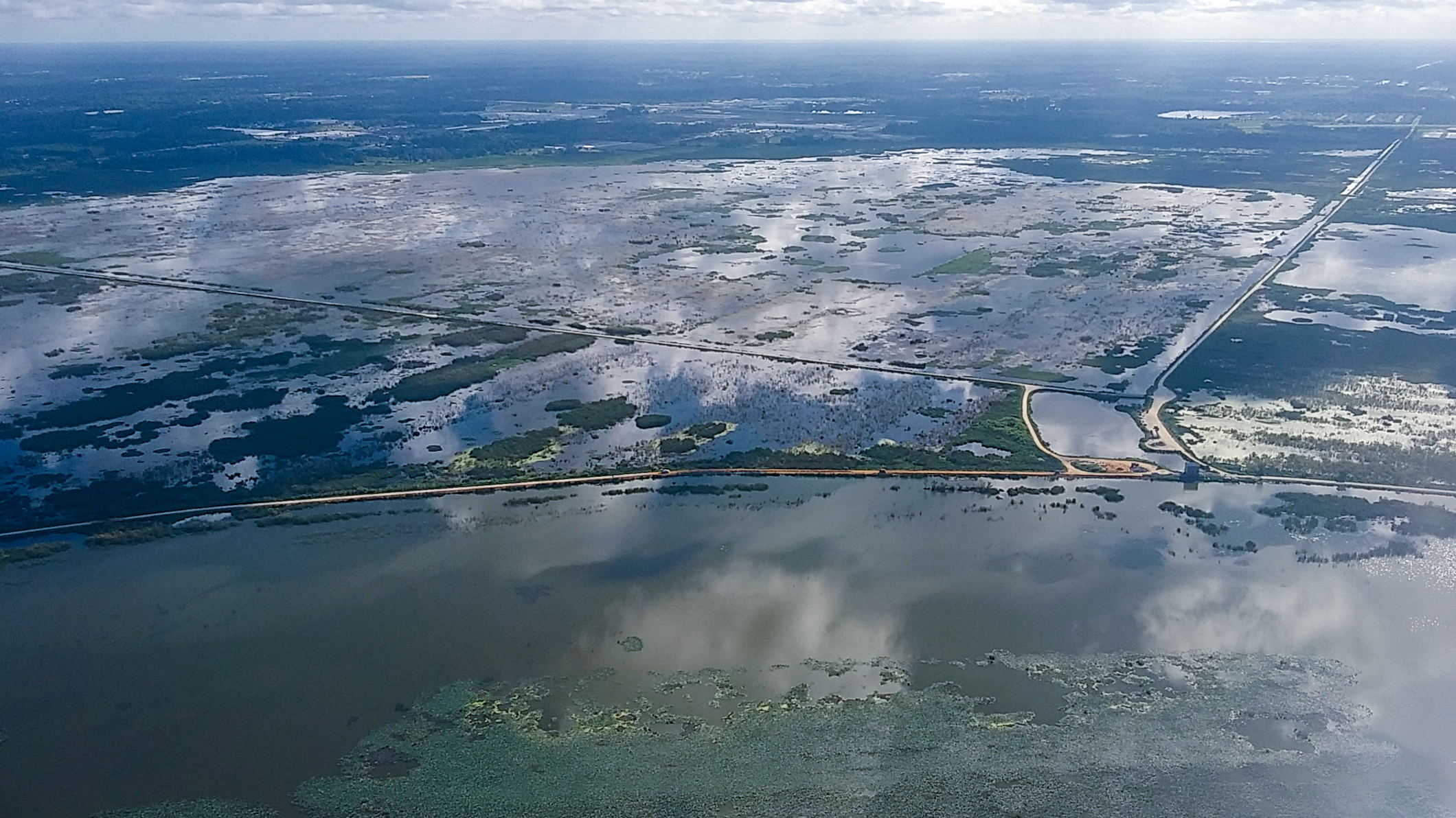 An aerial image shows recent water levels at the Lake Apopka North Shore. The wildlife drive within the property will be closed Aug. 30-Sept. 2 due to Hurricane Dorian.