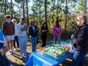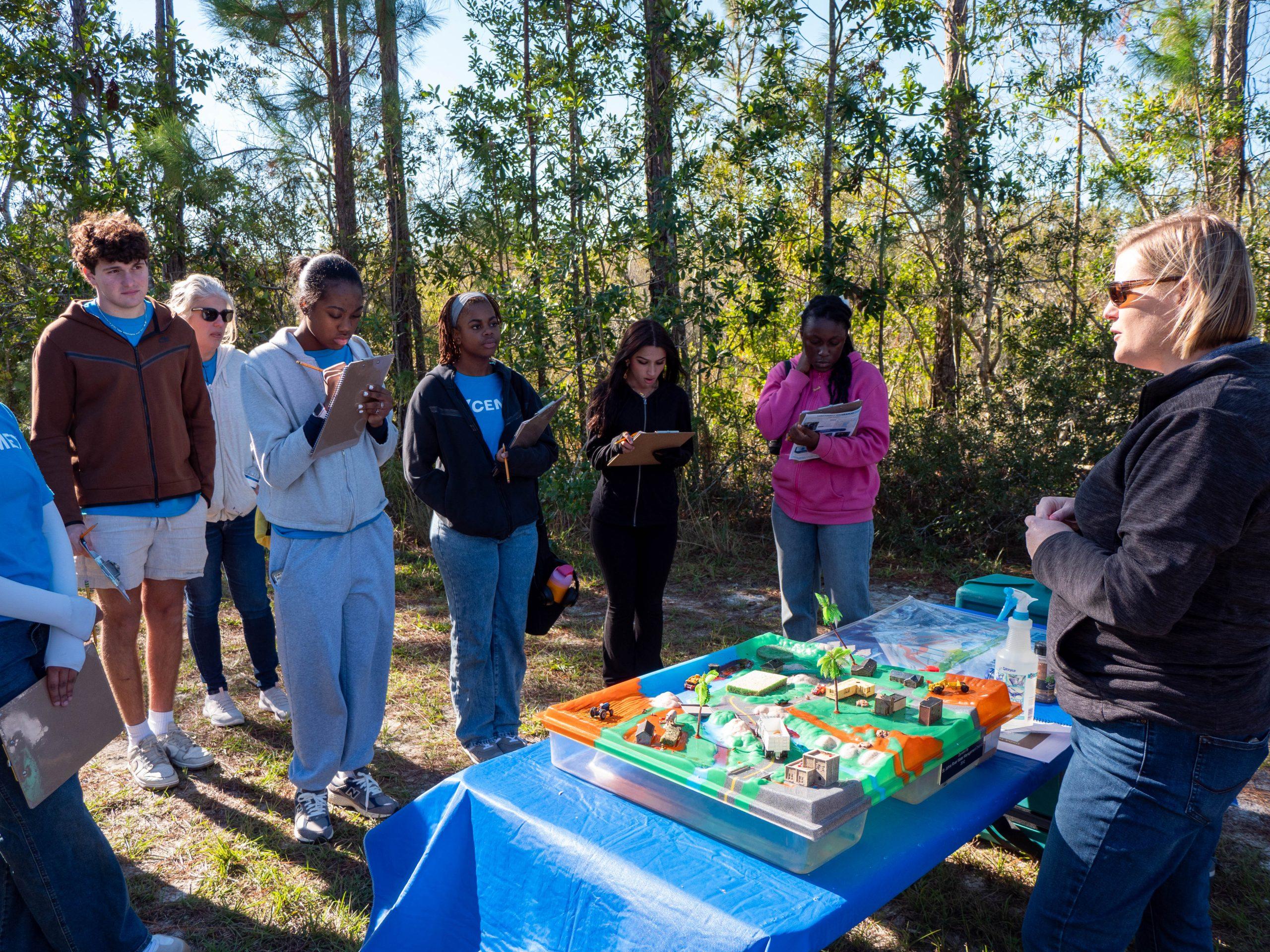 Pressel guides Lake Minneola High School students through a hands-on watershed monitoring lesson during AP Environmental Day in Clermont.