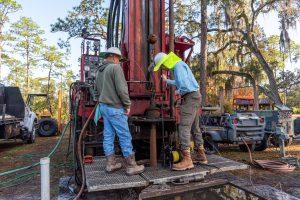 “We never want to reach a point where we’ve squeezed all the water out of the sponge,” Lee says. “That’s why monitoring wells, like the one we are drilling here at the Pittman Visitor Center, are crucial for water supply planning.”
